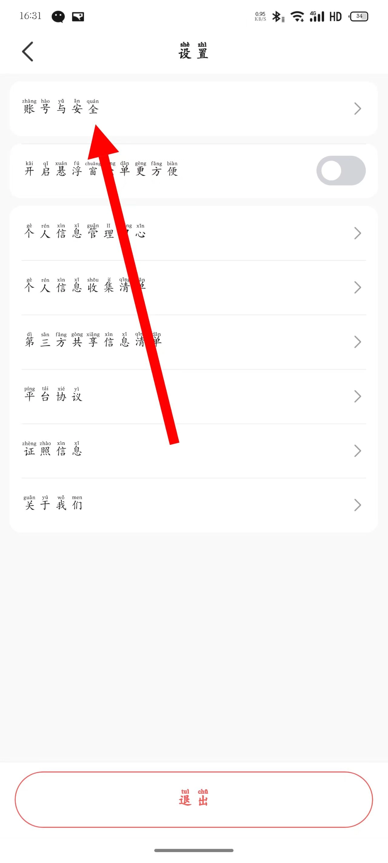 进入设置页面后,点击账号与安全。
