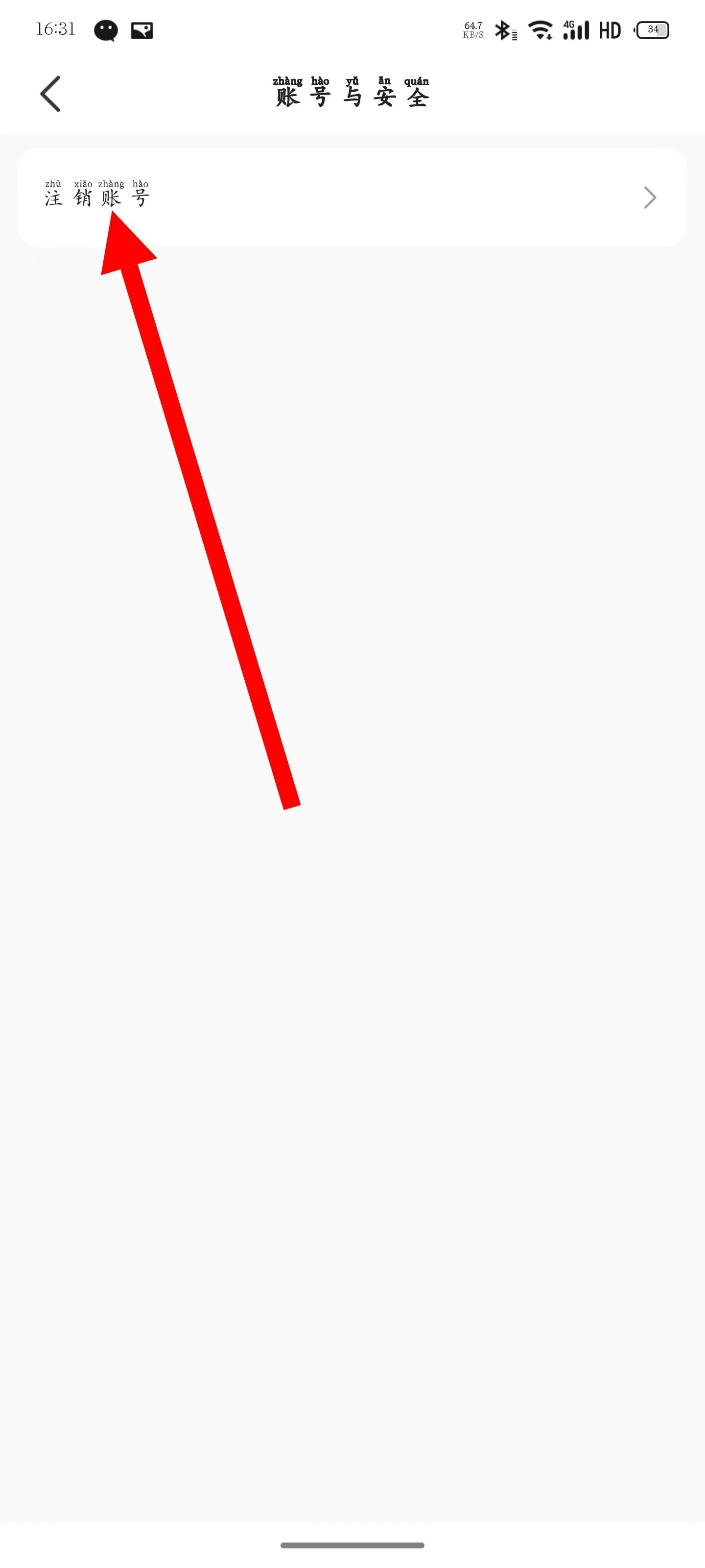 在账号与安全页面,点击注销账号。