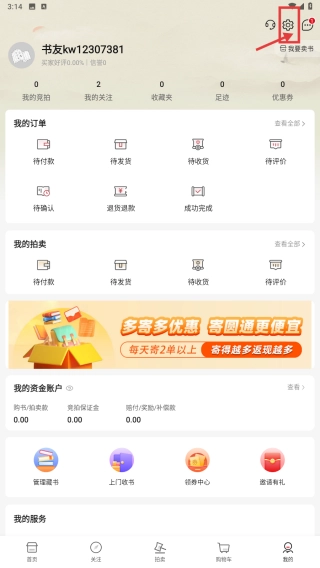 进入个人中心后,点击右上角的设置图标,即可进入设置功能区。