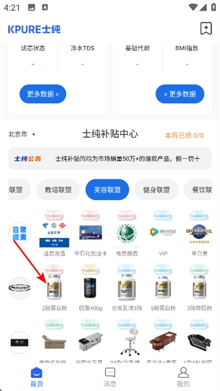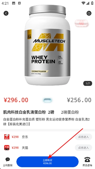 在美容联盟页面,挑选想要查看的商品,例如2磅蛋白粉。