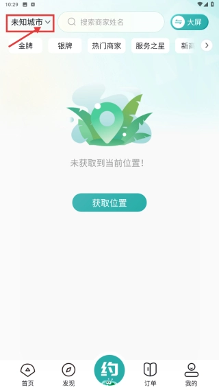 在服务预约页面,点击未知城市选项,即可进入城市选择界面。