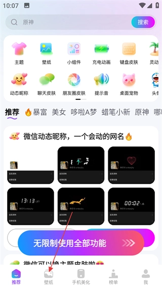 进入软件推荐页面,点击底部壁纸,进入壁纸页面。