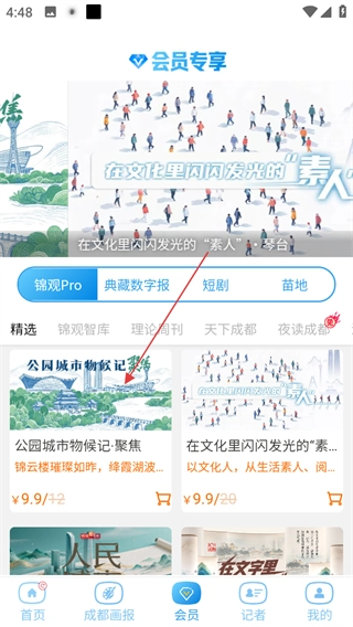 在会员页面,找到“公园城市物候记”的聚焦内容并点击,即可进入对应的详情页面。