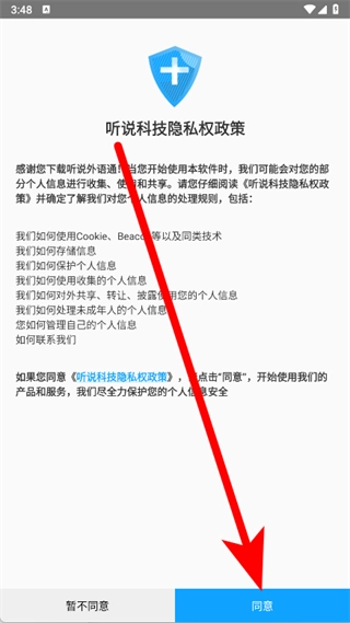 打开外语通,在弹窗中点击同意。