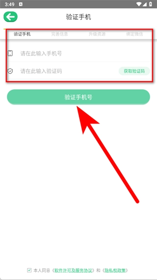 在验证手机的页面上,输入手机号以及获取到的验证码,接着点击“验证手机号”按钮。