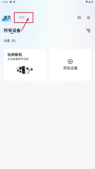 打开设备管理应用,点击顶部的“我的”选项,即可进入个人中心页面。