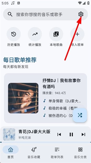 在音乐软件的首页界面,找到并点击右上角的设置图标,随后就能进入设置页面。