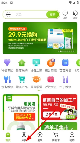 涵盖口腔器械、药品等全品类货品,延伸至义齿定制、牙套定制、设备维修等服务,覆盖日常采购与临床定制需求,无需辗转多平台即可满足多样化口腔健康相关诉求。