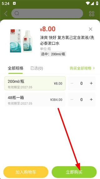 挑选好商品的规格等相关信息后,点击“立即购买”按钮,就能开展购买流程。