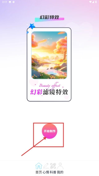 打开特效,点击开始制作幻彩滤镜特效。