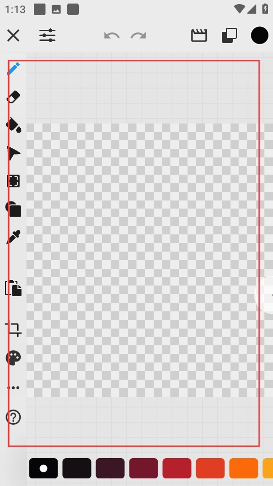 进入编辑画布页面后,你可以借助左侧的工具以及下方的颜色来开展创作。
