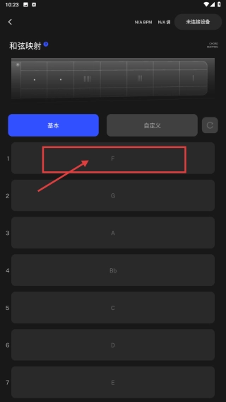 进入和弦映射界面后,找到并选择F和弦选项,接着对该和弦对应的映射参数进行设置。