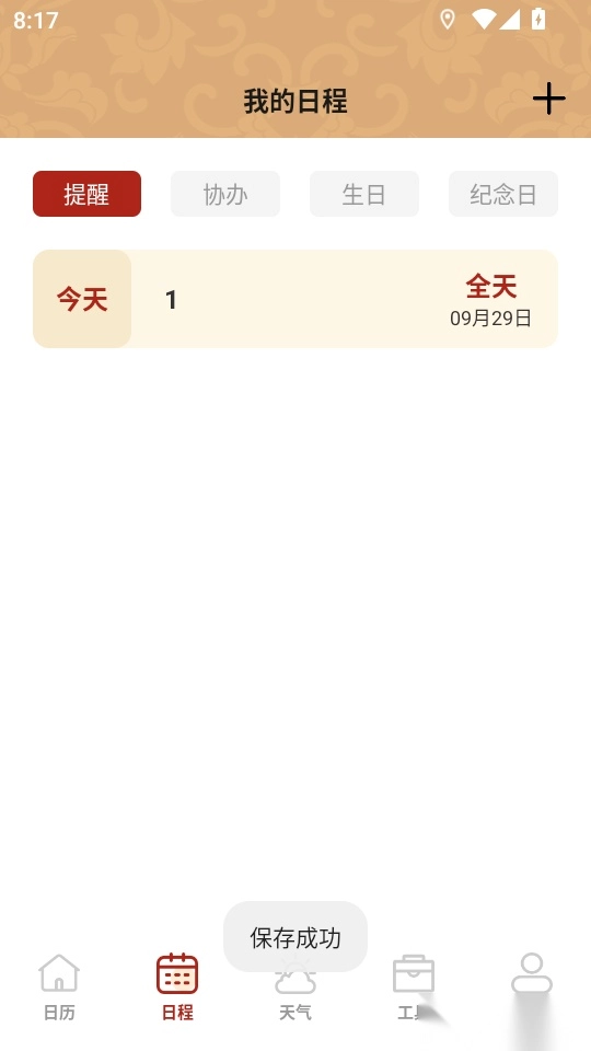 5. 接着回到“我的日程”菜单界面,就能查看已保存好的日程记录了。
