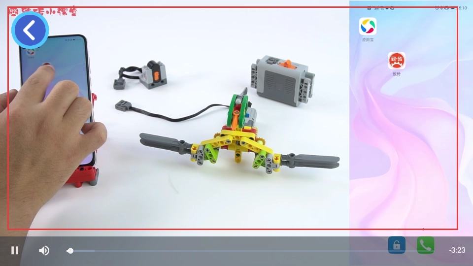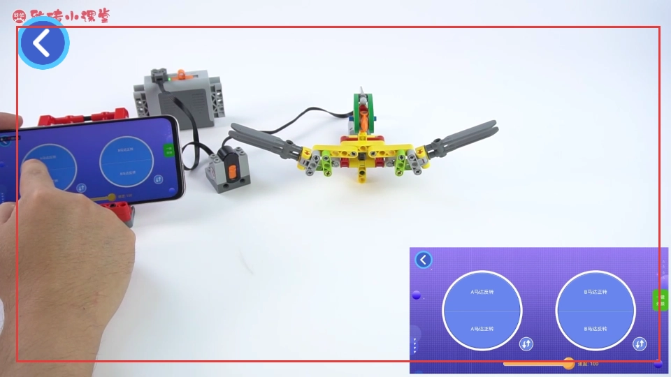 继续观看,按照手机界面上的提示来操作积木装置,感受相关功能带来的体验。