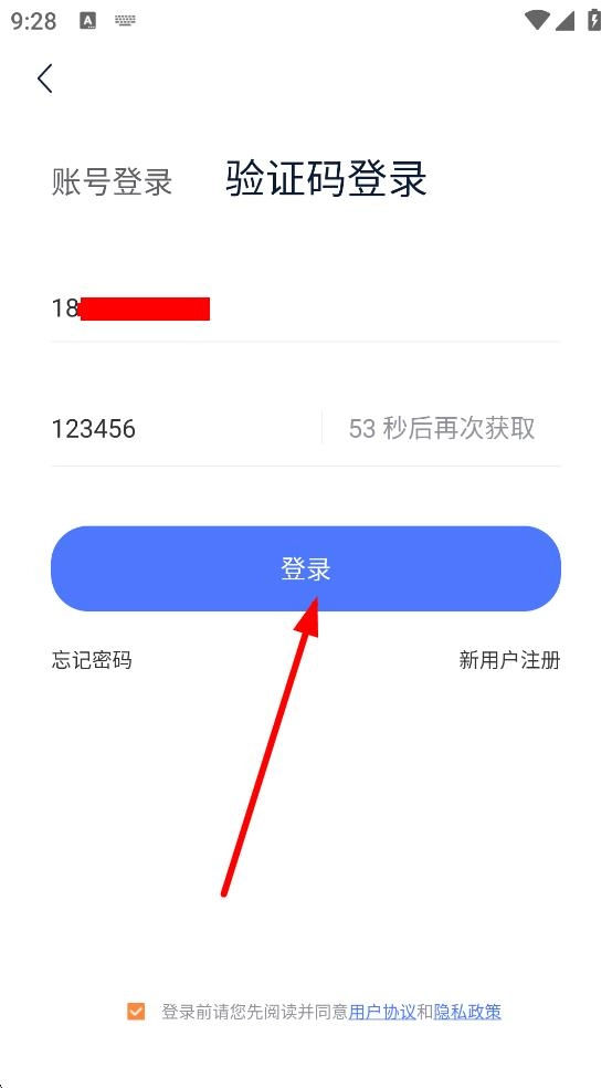 在登录界面,选择验证码登录方式,依次输入手机号与验证码,随后点击登录按钮,即可完成登录流程。