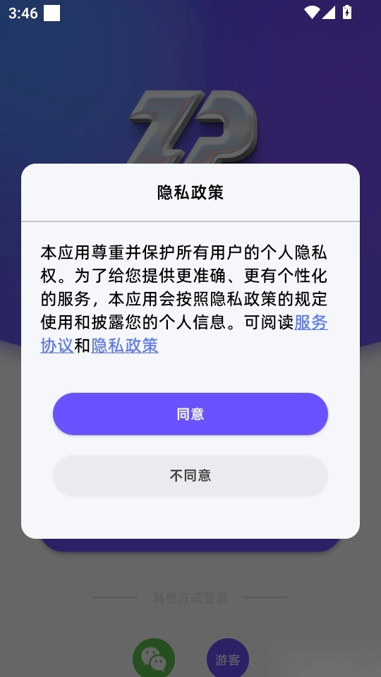 1. 首先打开软件,阅读完“隐私政策”后,点击“同意”按钮进入下一步