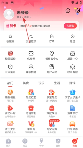 进入虎扑识货首页,点击底部我的,进入个人页面。