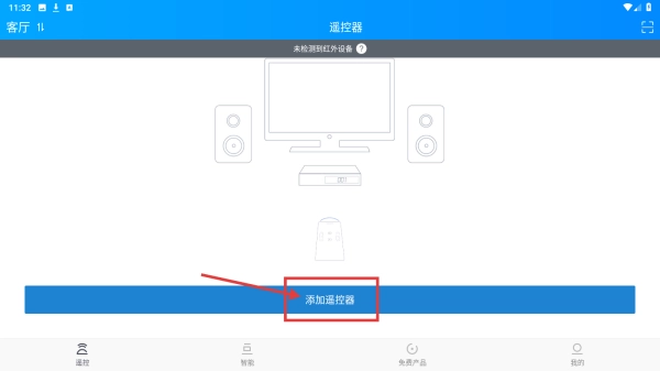 打开智能遥控类应用,点击添加遥控器按钮,进入添加控制页面。
