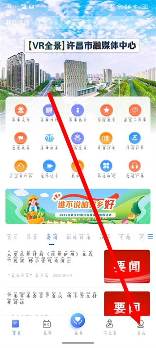 打开我的许昌,点击底部导航栏最右侧的我的。