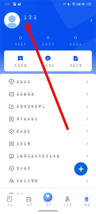 进入我的页面,点击去登录选项,进入登录页面。