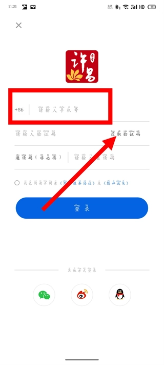 进入登录界面后,先填写手机号码,接着点击“获取验证码”按钮,最后输入收到的验证码。
