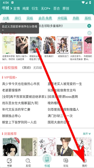 打开晋江小说后,点击页面底部的“我的”选项,即可进入个人页面。