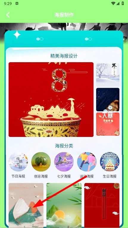 点击海报制作板块旁边的“点击进入”按钮,即可进入海报分类与模板选择页面。