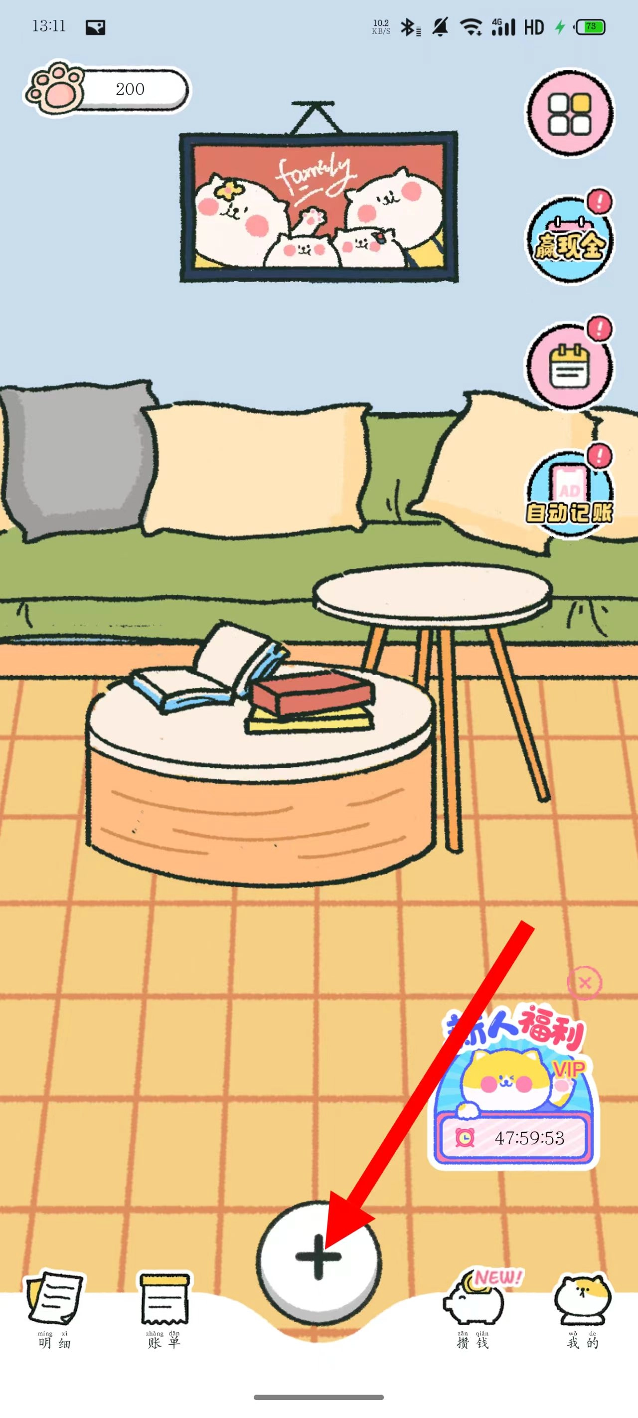 打开应用后,点击页面底部的“+”按钮,即可进入支出与收入的记录页面。