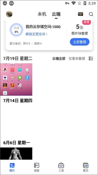 1、第一步我们先在此处切换至云端,接着挑选出需要删除的照片。
