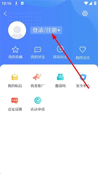 在个人页面,点击登录/注册,进入登录选择页面。