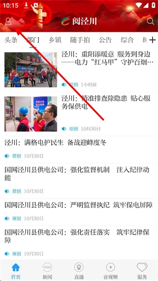 首页设置了新闻、直播、音视频、服务等五大板块及十五个子栏目,功能分类清晰明确,从信息获取到便民服务实现一站式覆盖,无需切换页面即可满足各类使用需求,操作逻辑流畅便捷。