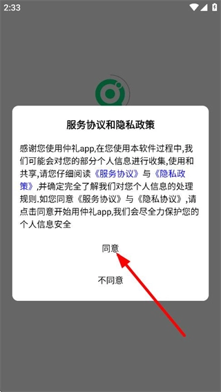 在服务协议与隐私政策的弹窗中点击同意后,即可进入登录页面。