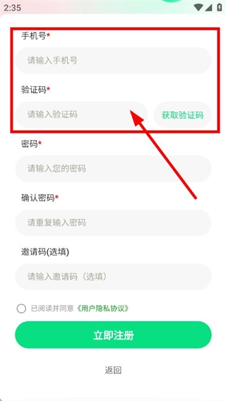 在设置密码并确认密码后,点击“立即注册”按钮,即可完成账号注册流程。