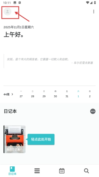 打开格志日记应用后,点击界面左上角的头像图标,即可进入个人中心页面。