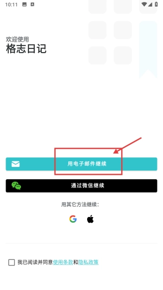 在登录注册方式选择页面,点击“用电子邮件继续”选项,即可进入电子邮件注册信息填写页面。