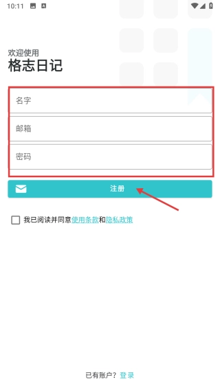 在电子邮件注册页面,依次填写姓名、电子邮箱和密码,勾选同意相关协议后点击注册按钮,即可完成账号注册流程。