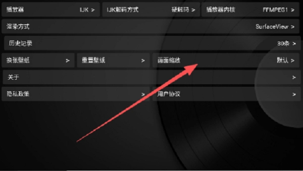 3、进入设置页面后,找到【画面缩放】,点击它。