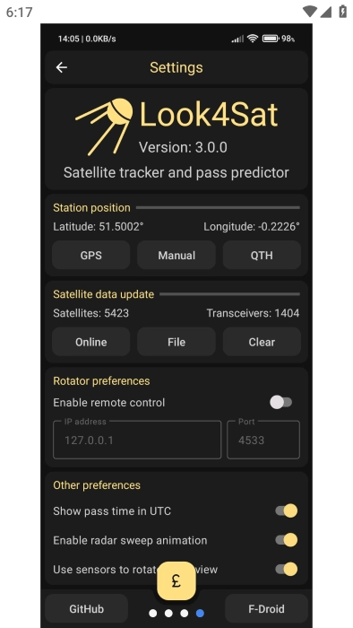 look4sat汉化版是一款能让我们轻松定位并追踪各类卫星的应用程序,借助实时地图显示功能,我们可以精准查看卫星的位置与轨迹,同时还能实时获取卫星过境时间、方位角等详细信息,十分适合卫星观测爱好者以及科研人员使用。