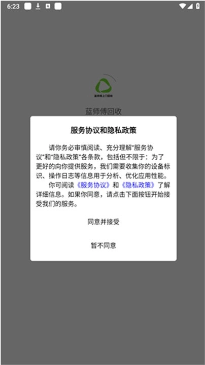 用户在手机中点击蓝师傅回收图标,进入主界面。