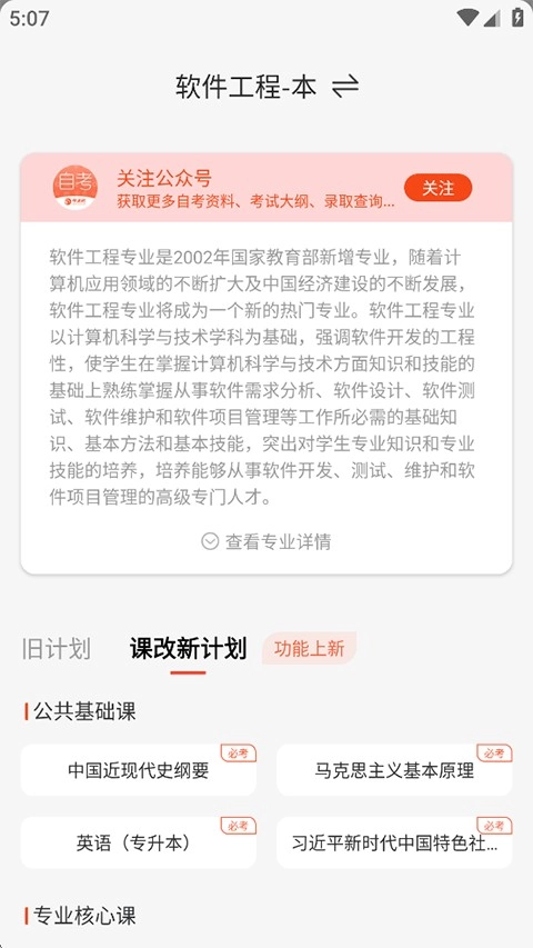 5、点击课改新计划,查看公共基础课与专业核心课程等内容。