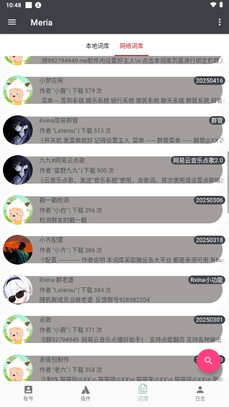 别看meria安卓端的安装包体积才这么点大但是它带给大家的功能和体验却是让人刮目相看的。它主要的作用是能够给用户带来高效群管理和便捷聊天的功能。选择meriaQQ机器人提供的词库能丰富机器人的聊天对话内容,用户可以根据自身喜好来进行个性化定制!