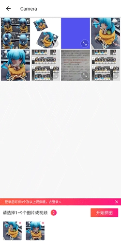 2、接着进入自己的相册,单次最多能选9张照片,数量可少不可多,选好后点击“开始拼图”。