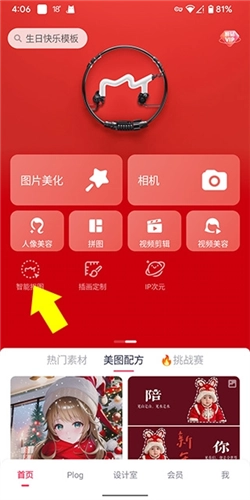 1、先安装美图秀秀应用,安装完成后打开它,接着在界面下方滑动功能栏,找到“智能抠图”这个选项。