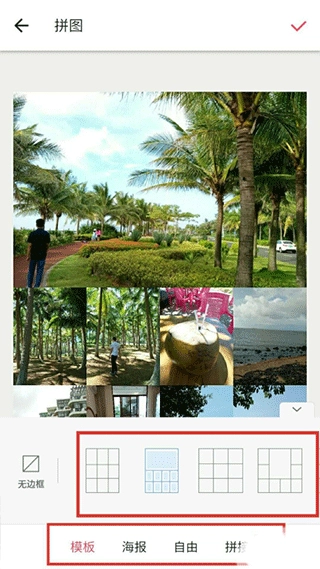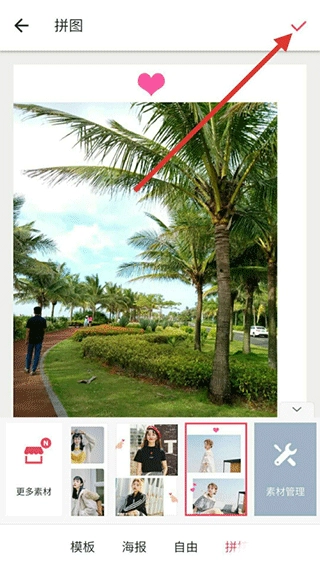 4、完成模板与排列方式的设置后,点击右上角的“√”符号,即表示拼图已完成。