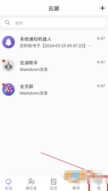 1、进入云湖首页,找到“我”板块;