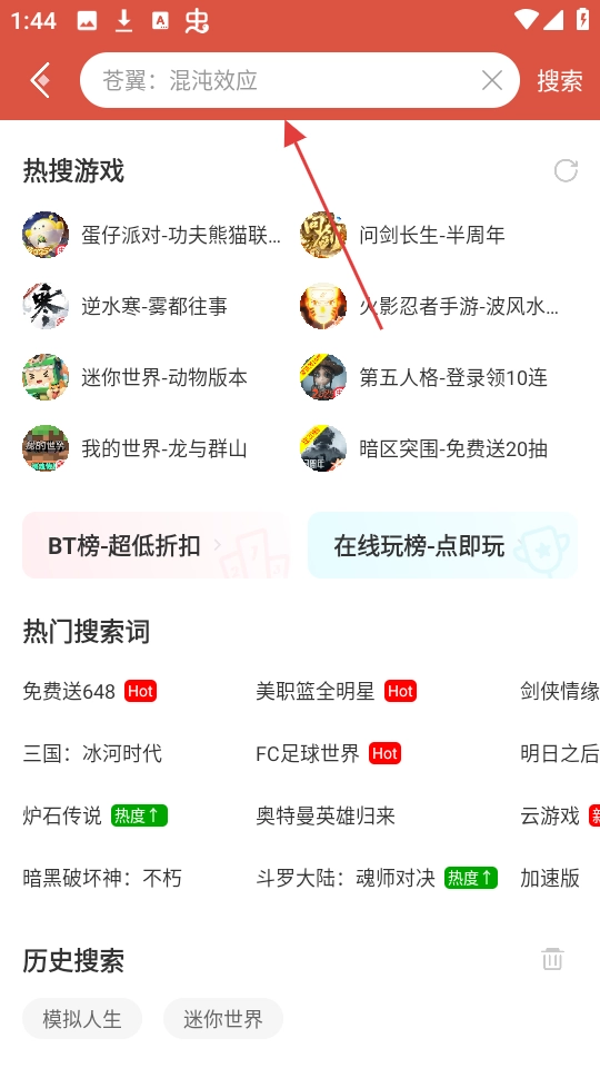 在软件首页,点击顶部的搜索框,即可输入想要查找的游戏名称。