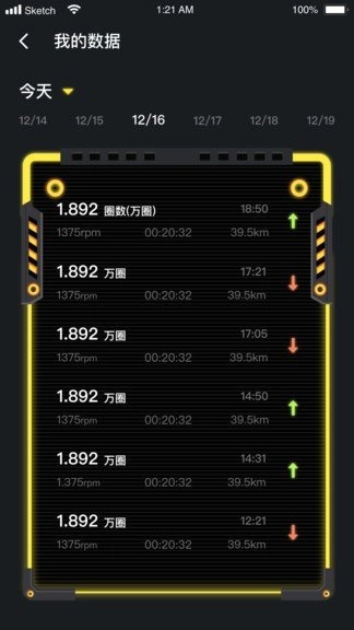 2、竞速功能:借助手机可以实时查看腕力球的转速、运动距离等各项数据。