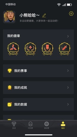 5、我的:在全云动中查看个人信息、个人数据、成就以及徽章。