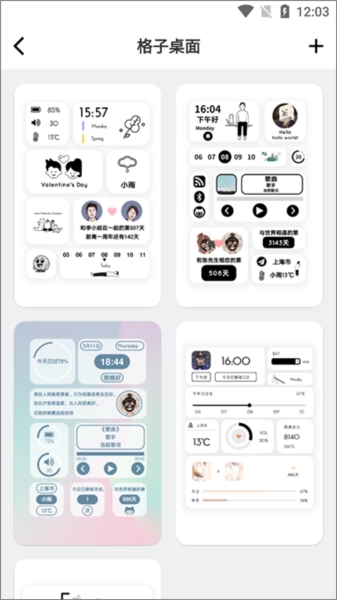 2、进入格子桌面页面后,浏览各类手机桌面模板并挑选出自己喜欢的。