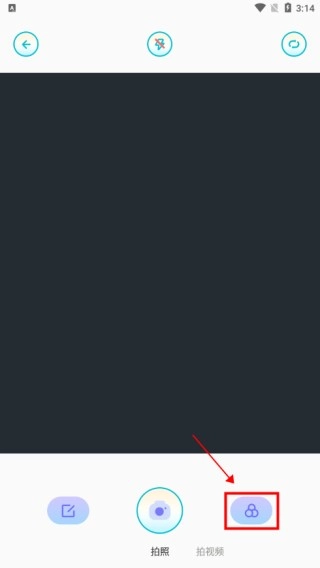 原相机App怎么在拍照时添加滤镜呢?1、打开相机APP,点击右下角标注的位置;